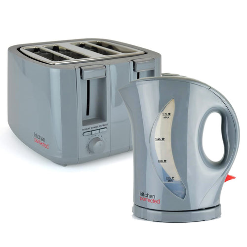 Cordless Electric Kettle & Toaster Set Grey 4 Slice Wide Slot 1.7L Jug Fast Boil