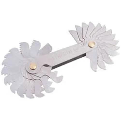 Folding leaves, individually stamped with accurately formed thread profiles. American National Thread UNC - UNF, in the range 4 - 62TPI. Sold loose.