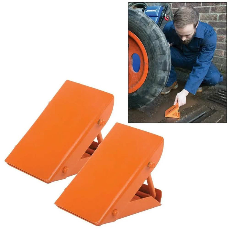 This Pair of Folding Steel Wheel Chocks 525748 is ideal for preventing a vehicle, trailer or caravan from moving whilst parked