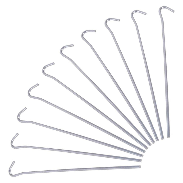 These 10 Galvanised Metal Tent Pegs are ideal for securing down tents, gazebos, tarpaulins etc. and are perfect for pegging down weed control mats in you garden.