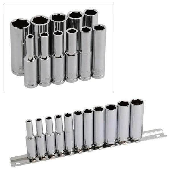 1/4" Socket Set Deep + Storage Rail 4mm-13mm Metric Chrome Vanadium Steel 11pc