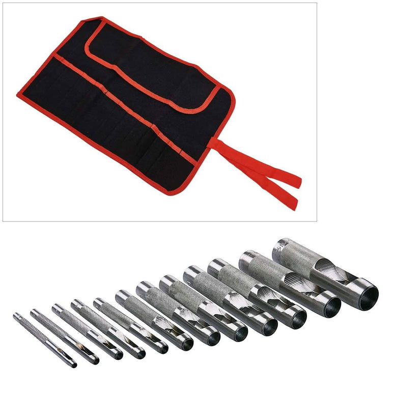 New 12 Piece Precision Ground Hollow Punch Set + 12 Pocket Canvas Tool Roll