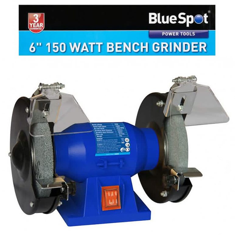 This 6" 150 Watt Bench Grinder from BlueSpot Tools can be used with polishing wheels, cloth wheels and grinding wheels.