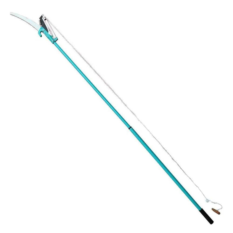 - Pruner blade for smaller branches and saw attachment for larger branches