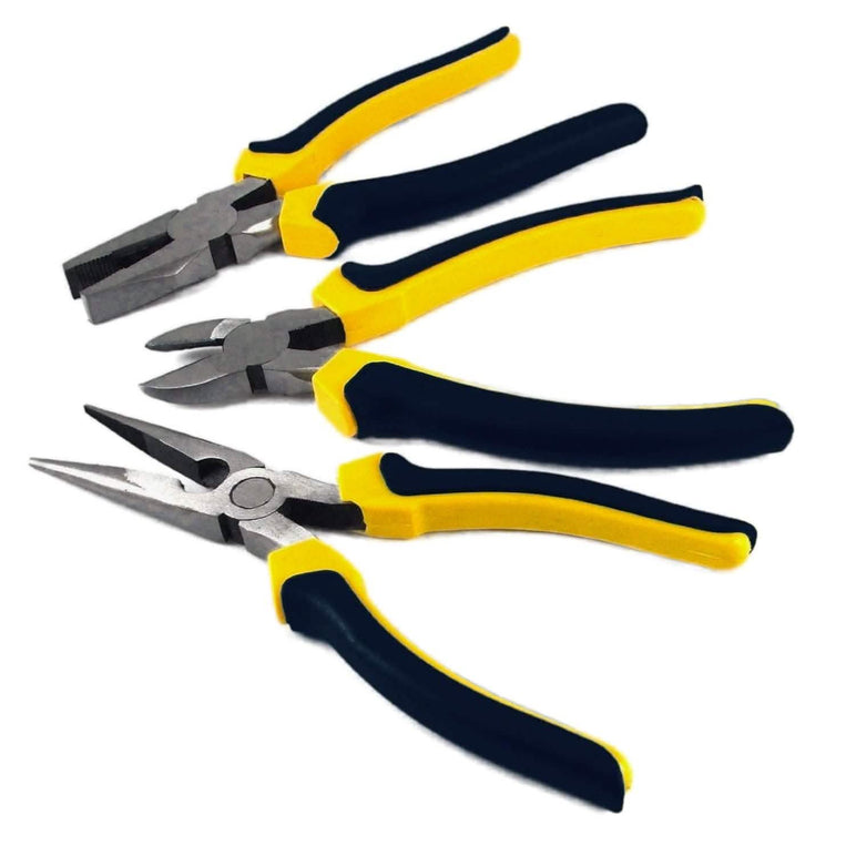 This 3PC Heavy Duty 8" 200mm Plier Set - Combination, Long Nose, Cutters is manufactured from drop forged, heat treated steel.