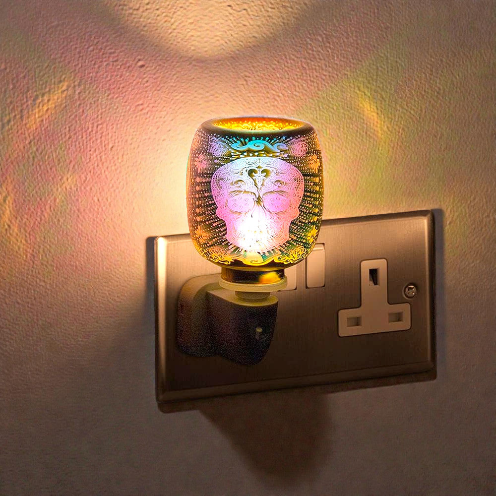3D Skull Oil Burner & Wax Warmer plus Pack of Sandalwood & Vanilla Scented Wax Melts