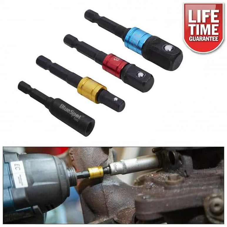 This Colour Coded Impact Socket Adaptor & Bit Holder Set from BlueSpot Tools is manufactured from chrome vanadium steel for increased strength and durability.