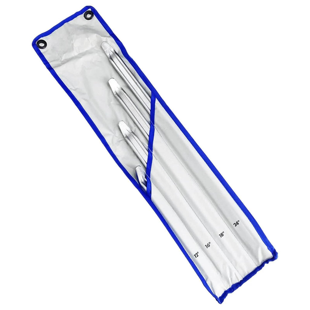 This heavy duty set includes four tyre levers in convenient sizes: 12", 16", 18", and 24", making it versatile enough for use on motorcycles, quads, ATVs, cars, vans, 4x4s, and more.