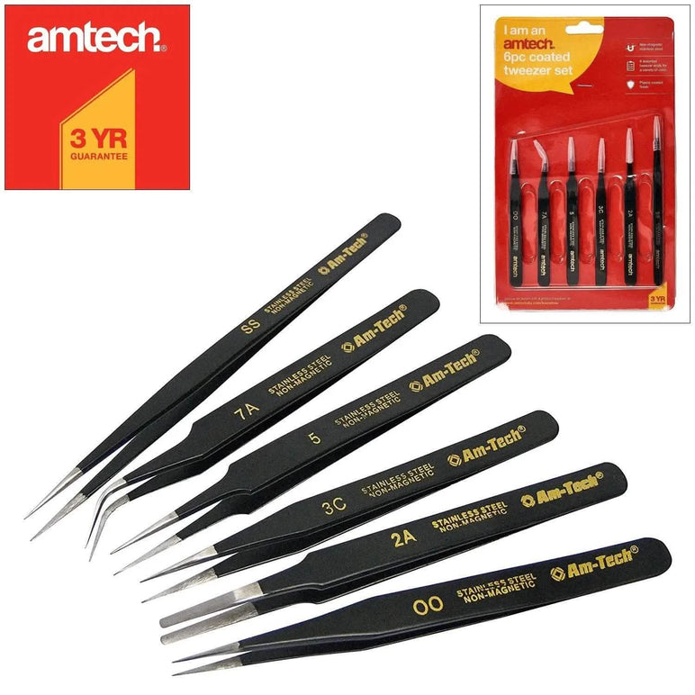 This 6 Piece Precision Stainless Steel Epoxy Coated Tweezer Set