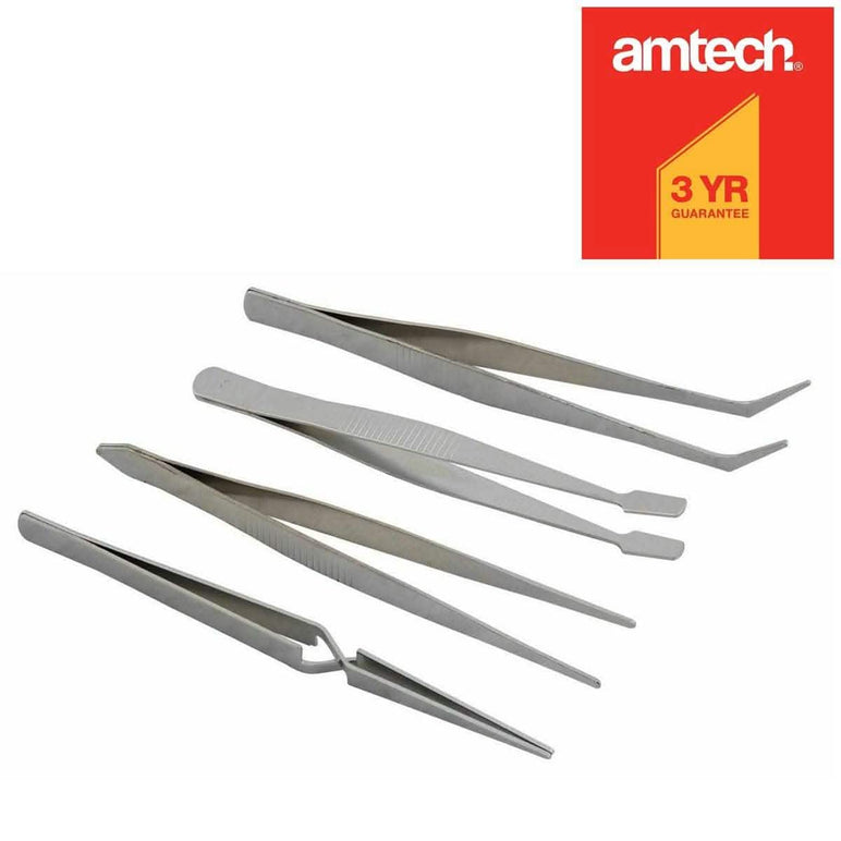 This 4 Piece Precision Tweezer Set from Amtech® is ideal for a variety of hobbies and crafts, as well as jewellery making and repairing tasks.