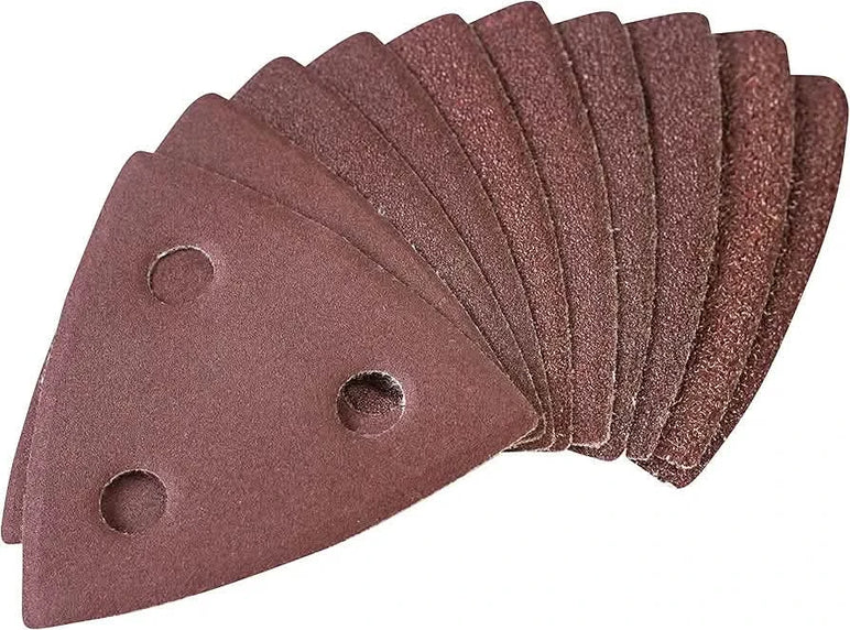 Set of 10 Perforated triangle sanding sheets for sanding most types of wood and painted surfaces, as well as plaster and fillers.