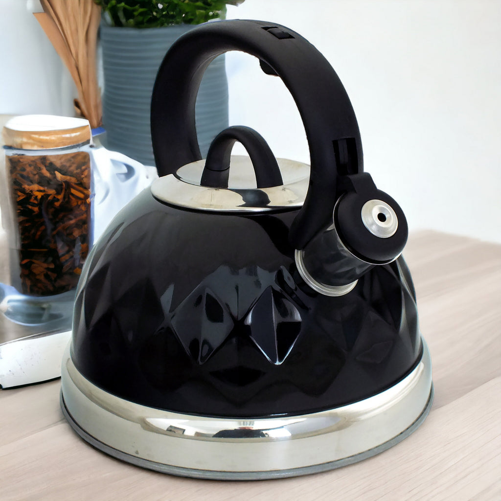Upgrade your kitchen with the Voche 3-Litre Diamond Pattern Stainless Steel Whistling Kettle. This kettle seamlessly blends elegance with functionality, enhancing the ambiance of any space.