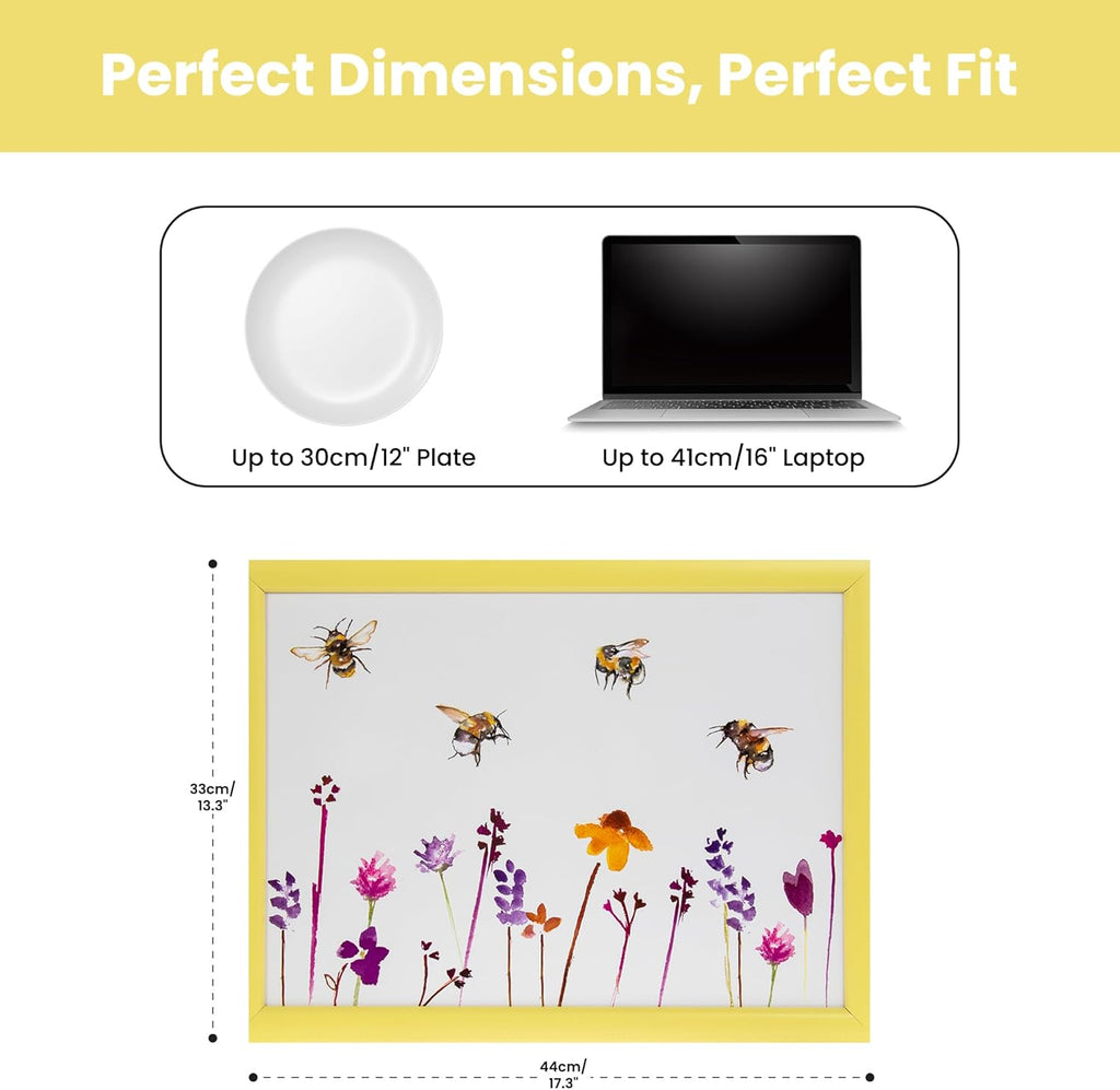 Busy Bees Yellow Lap Tray Cushioned Laptop Tray with Padded Bean Bag Base