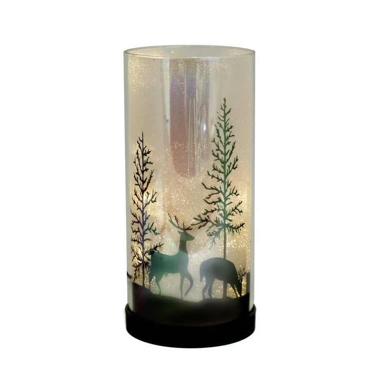 A sophisticated diffuser film inside the lamp splits up the light from the internal warm-white LEDs into a myriad points of light which then frame a Winter scene of deer and fir trees, giving a bright sparkling frost effect to the entire lamp.