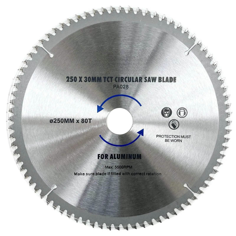 250mm TCT Circular Saw Blade for Cutting Aluminium | 80T Fine Cut | 30mm Bore with 3 Reduction Rings