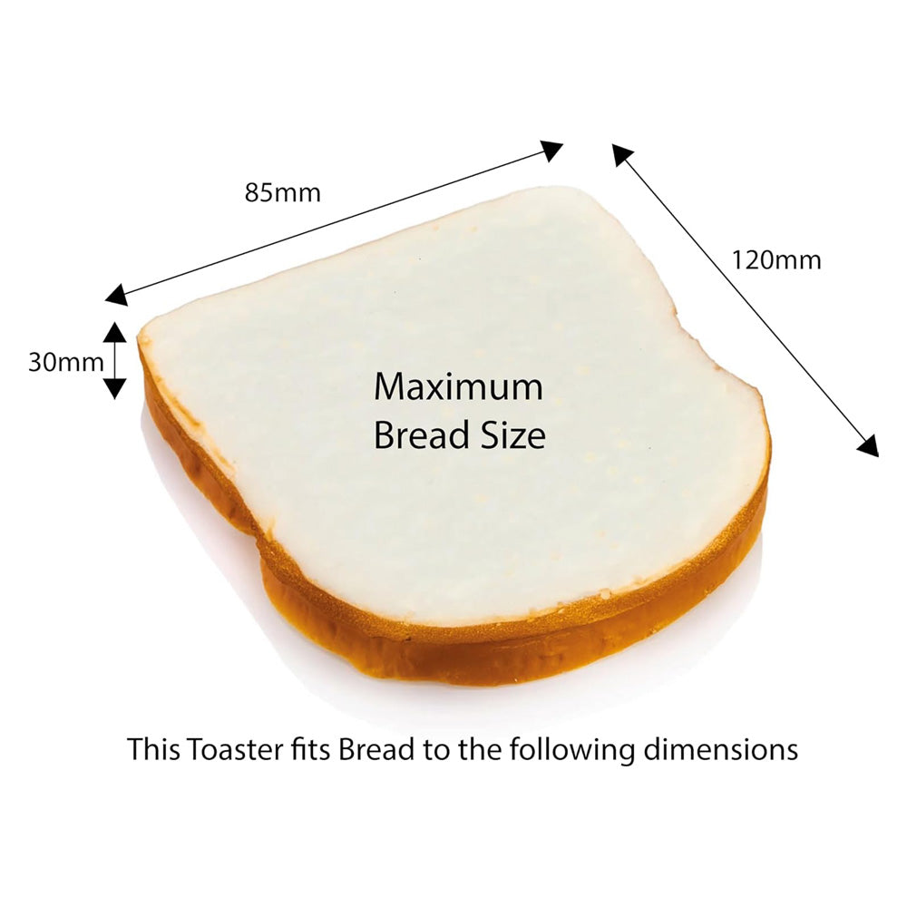 -  WIDE TOASTING SLOTS: Wider and deeper slots accommodates popular and larger bread slices as well as crumpets, bagels, and many more. The automatic centralization allows thin and thick bread to be cooked evenly. Slot Size: 125mm wide x 100mm deep x 30mm thickness