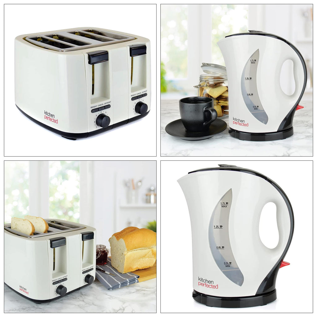 This 1.7 LITRE 2200W ELECTRIC FAST BOIL CORDLESS KETTLE AND 4 SLICE WIDE SLOT TOASTER SET has a stylish, contemporary design and would look at home in any kitchen.