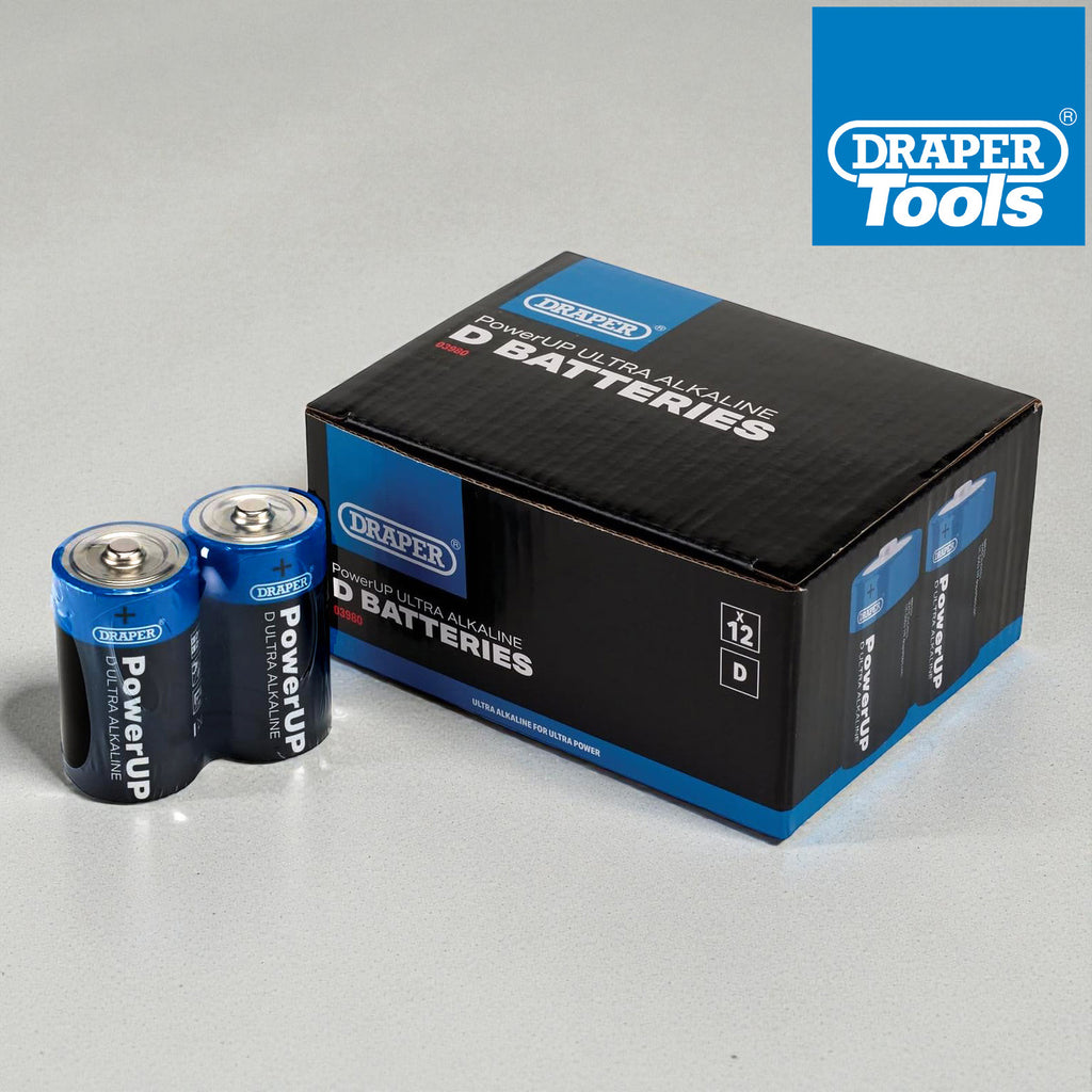 Pack of 12 Draper PowerUP Ultra Alkaline D Size Batteries
