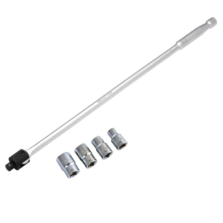 Draper 1/2" Dr. 600mm Flexi Knuckle Breaker Bar plus 4 Piece Socket Set | 10mm, 13mm, 17mm and 19mm