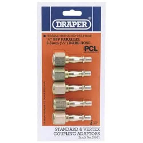 Draper 1/4" Female Thread Pcl Coupling Screw Adaptor (Pack Of 5) Dr-55061