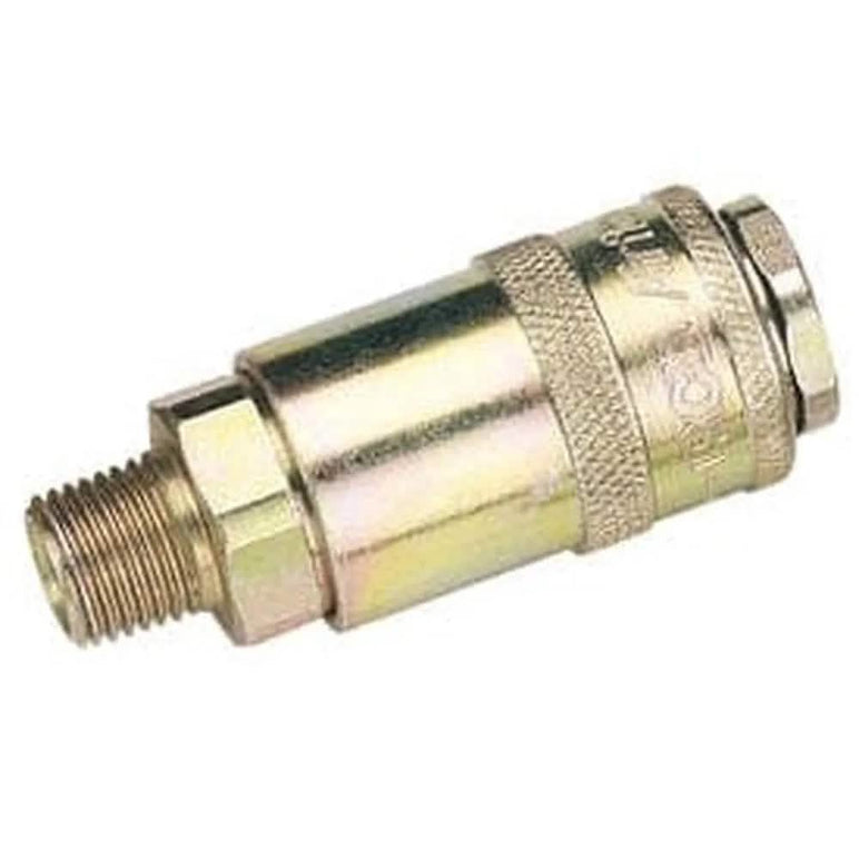 For use with standard adaptors. BSP parallel. Positive lock single action ideally suited for most compressed air applications. Maximum airflow rate 1197L/min (42cfm) at 6.9bar (100 psi). Maximum working pressure 13.8bar (200psi). Sold loose.