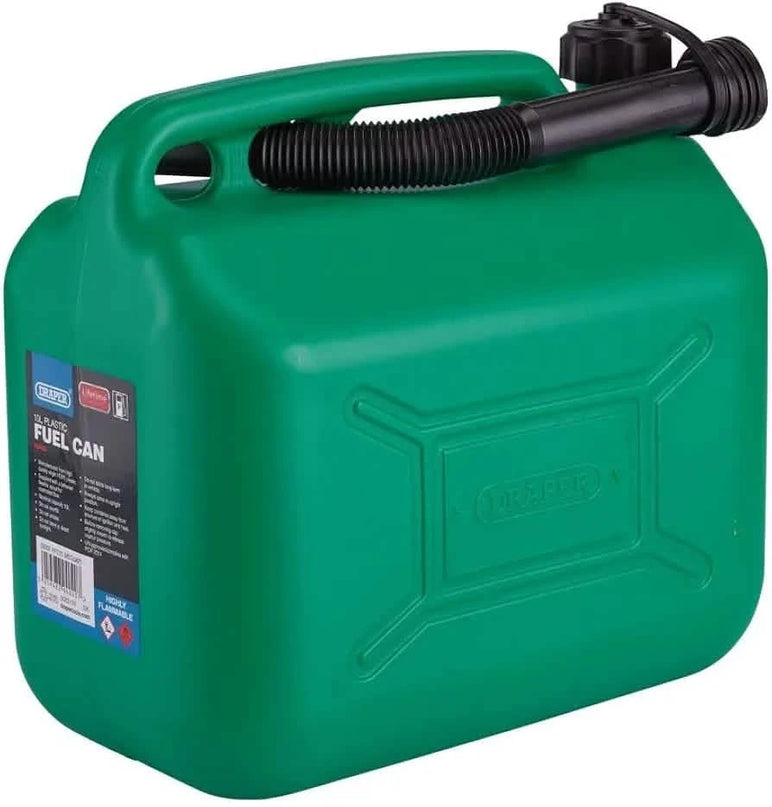 This 10 litre UN-certified fuel can is manufactured from high-quality virgin HDPE plastic. It's suitable for storing in a vehicle or in the garage. Supplied with a tethered flexible spout for controlled flow. Available in green for unleaded and black for diesel.