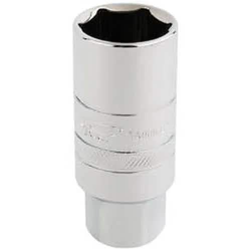 Expert Quality, 6 point deep sockets with a rubber insert for plug protection and retention. Manufactured from chrome vanadium steel hardened and tempered with a polished finish. Socket length 65mm. Each socket has a knurled ring for extra grip. Display packed.