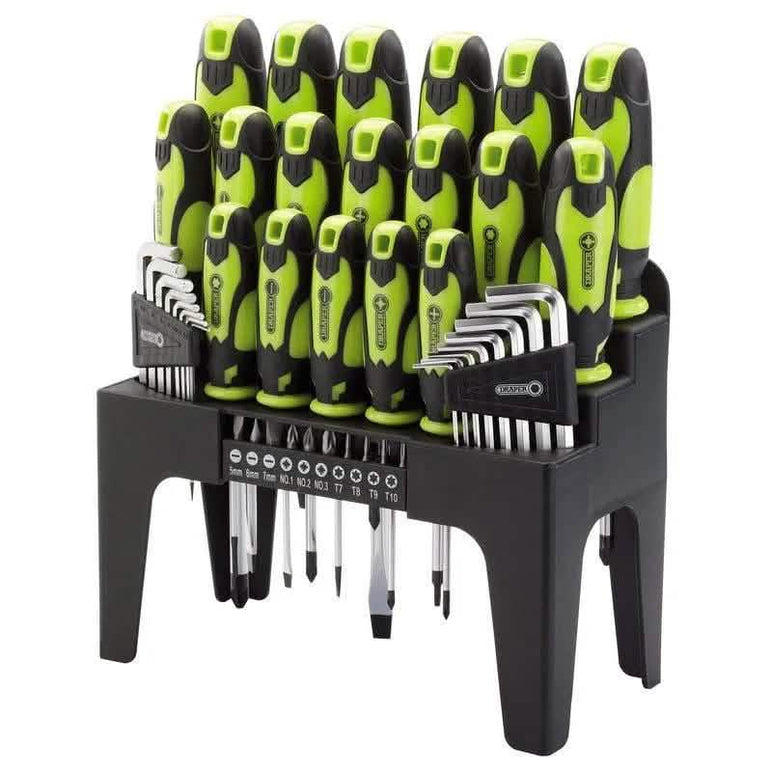 A comprehensive set with a variety of screwdrivers and bits from Draper Tools.