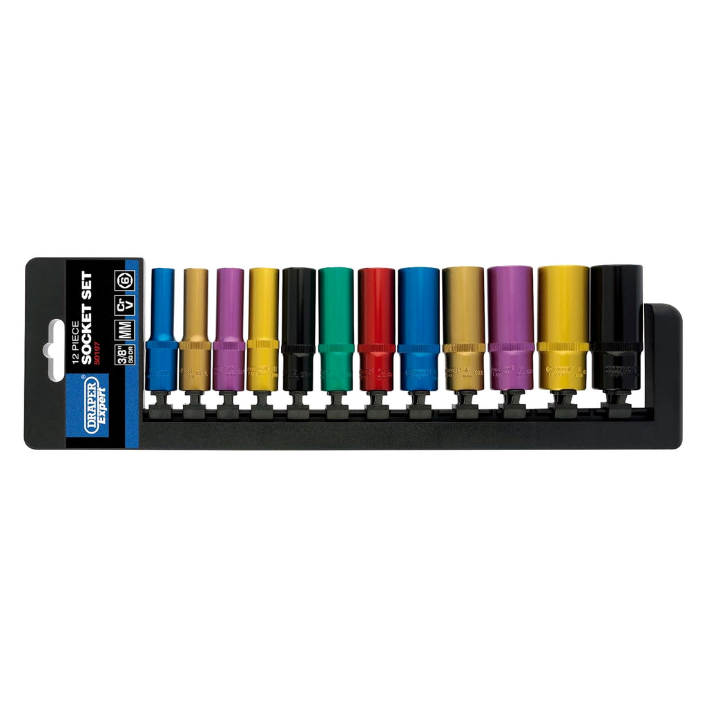 Draper 12 Piece 3/8" Sq. Dr. Metric Coloured Deep Socket Set
