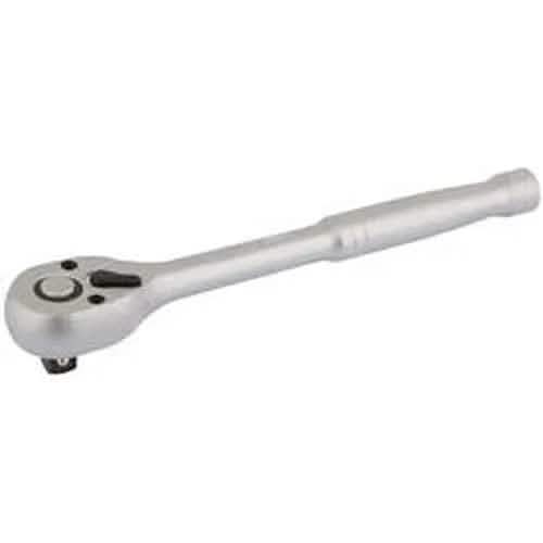 Forged from chrome vanadium steel hardened, tempered and satin finish. 72 tooth ratchet with lever forward/reverse selector and quick release mechanism. Spring - loaded ball bearing for secure socket holding. Display Packed.