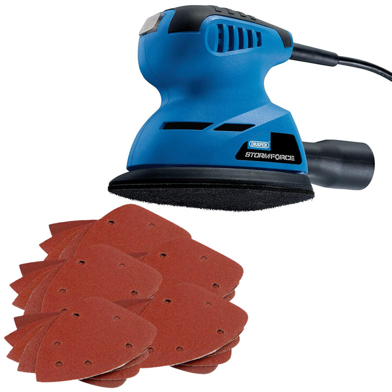 The sander is supplied with three sanding sheets: 60, 80 and 120 grit and as part of this offer we are also including an additional pack of 24 assorted grit sanding sheets!