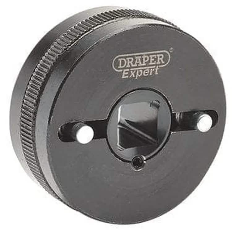Adjustable adaptor for winding back brake caliper pistons. The rotating centre bezel adjusts both sides of the tool to correctly fit and wind back the brake caliper piston. Can be used as a 2 or 3 pin adaptor and compatible with all wind back tools that use a 3/8" drive. 3-pin side quickly adjusts from 20-30mm. 2-pin side quickly adjusts from 22-35mm.