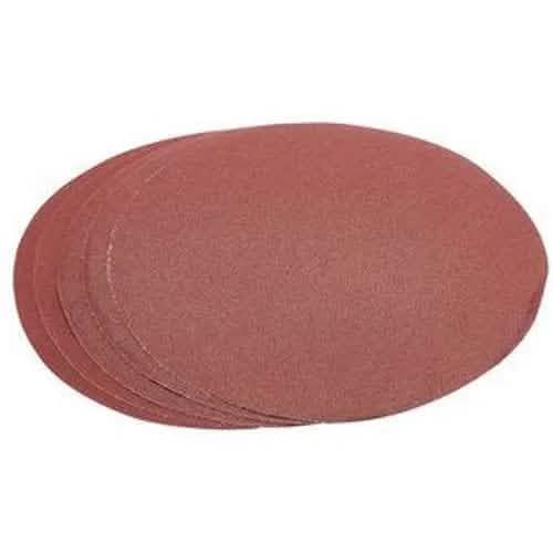 Aluminium oxide abrasive discs, supplied with hook and loop backing for use with hand radial sanders. Assorted pack comprises 2 x 80, 1 x 100 and 1 x 120 grit grades.