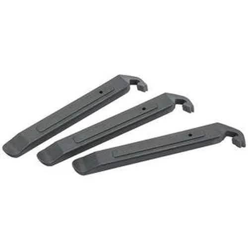 Pack of three reinforced nylon tyre levers. Perfect tool set for storing in any bike repair kit. Designed to be pushed between the rim and tyre bead to ease any tyre away from the wheel. Helping to make replacing tyres a quick and stress-free task. Supplied as a pack of three.