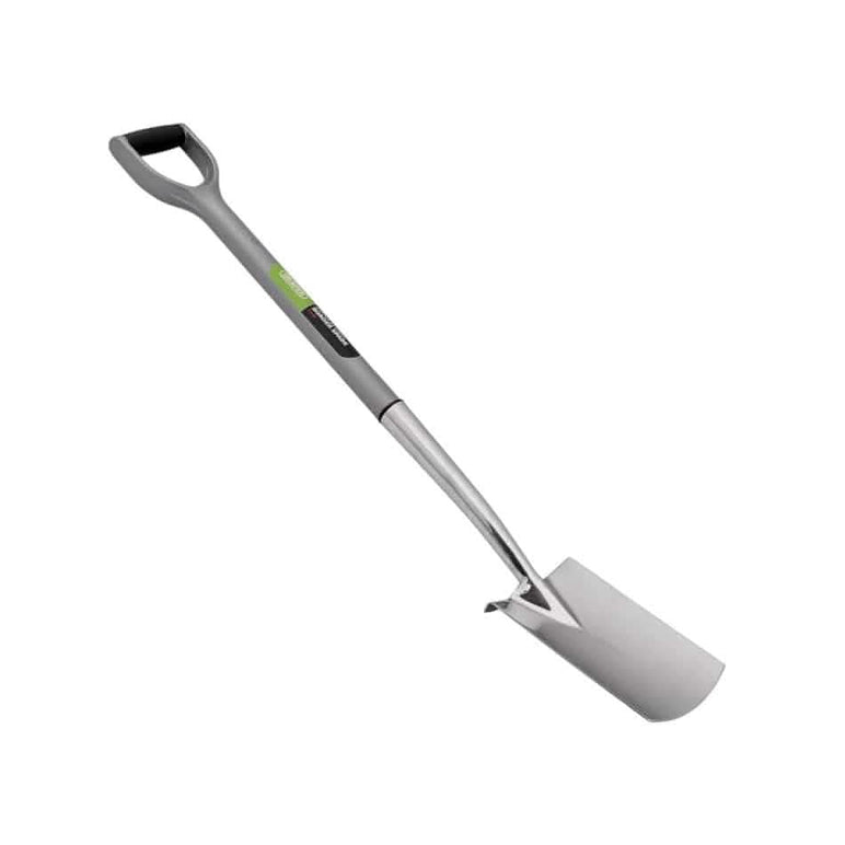 This Stainless Steel Draper Border Spade is a gardening tool designed for precision digging and edging in tight or narrow areas. Its compact size makes it ideal for working in confined spaces, such as borders or around delicate plants. The spade's blade is made from high-quality stainless steel, ensuring durability, resistance to rust, and easy maintenance. A sturdy handle made from reinforced materials, offers a comfortable grip for extended use. Its sharp edge allows for efficient cutting through soil, roots, and turf with minimal effort.