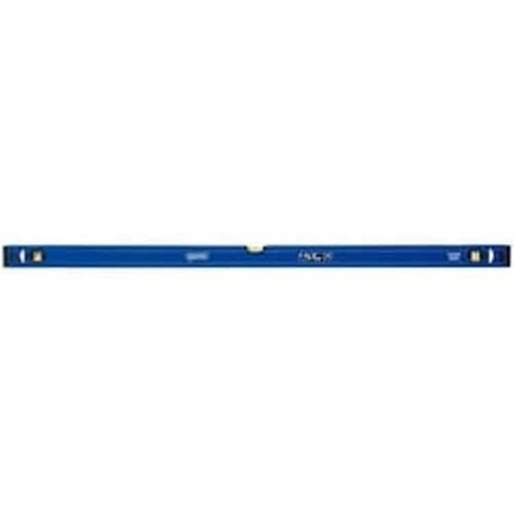 Box section levels made from high quality Aluminium with three permanently fixed shock resistant acrylic UV resistant vials, 300mm - one horizontal and one vertical vials, 600mm,900mm and 1200mm - one horizontal and two vertical vials, precision milled bottom. V - Groove for levelling pipework. All the levels are electrostatically epoxy powder coated and baked for maximum protection. Fitted with shock absorbing end caps. Accuracy of 0.5mm per 1M = 0.029° in standard position.