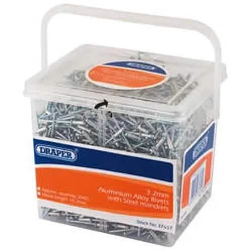 Aluminium rivets with steel mandrel. 3.2mm rivets in tubs of approx. 2000: 4.0mm rivets in tubs of approx. 1200: 4.8mm rivets in tubs of approx. 800:.