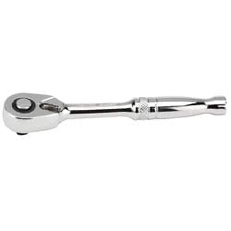Expert Quality, 72 tooth reversible ratchet with solid handle and quick release button. Chrome vanadium steel head and shaft with polished finish. Display packed.