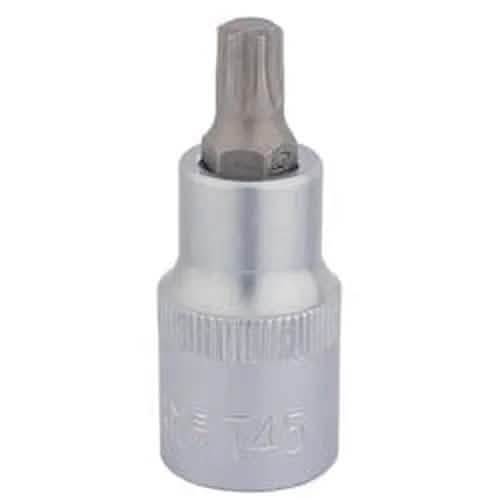 Expert Quality, socket with insert bit. Sockets manufactured from hardened and tempered chrome vanadium steel with a sand blasted bit of S2 silicon steel. Each socket has a knurled ring for extra grip. Display packed.