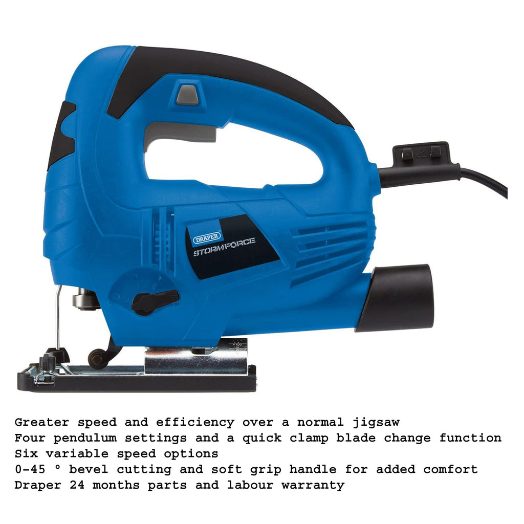 Draper 550W Electric Jigsaw with 15pc Blades | 230V Variable Speed Orbital Pendulum Action