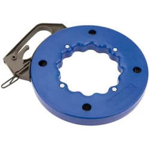 Designed for drawing electrical wiring through conduits. Manufactured from oil tempered wire with blackened finish. Housed in convenient rotating plastic storage case with handle. Brake trigger mechanism in handle. The hooked end avoids snagging once the wiring has been attached. Display packed