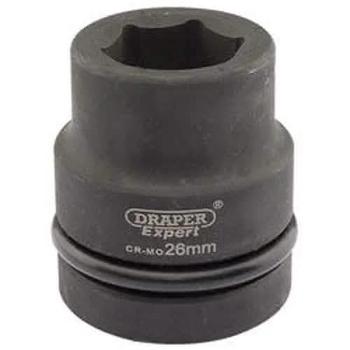 Expert Quality, 6 point sockets forged from chrome molybdenum hardened, tempered and chemically blacked for corrosion protection. Supplied with pin and ring. These sockets are for use with air, electric or manual impact wrenches. Packed in polythene bag with barcode.