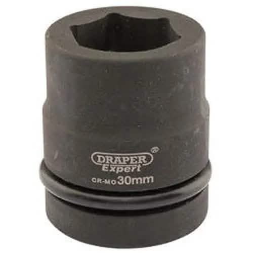 Expert Quality, 6 point sockets forged from chrome molybdenum hardened, tempered and chemically blacked for corrosion protection. Supplied with pin and ring. These sockets are for use with air, electric or manual impact wrenches. Packed in polythene bag with barcode.