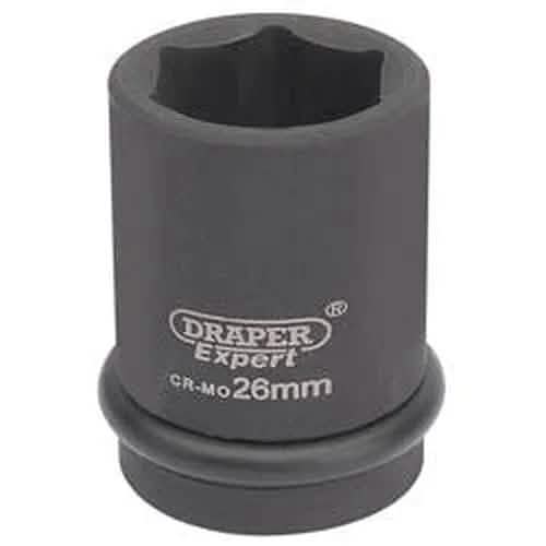 Expert Quality, 6 point sockets forged from chrome molybdenum hardened, tempered and chemically blacked for corrosion protection. Supplied with pin and ring. These sockets are for use with air, electric or manual impact wrenches. Packed in polythene bag with barcode.