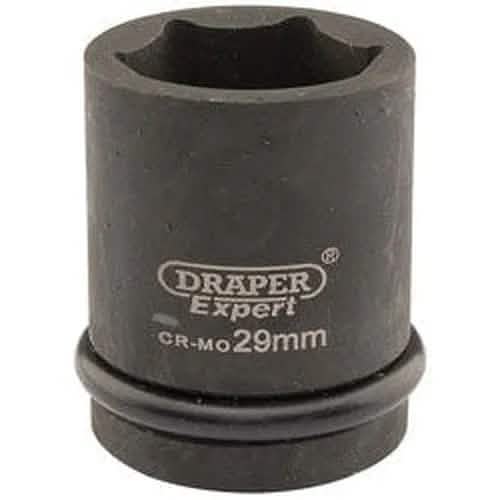 Expert Quality, 6 point sockets forged from chrome molybdenum hardened, tempered and chemically blacked for corrosion protection. Supplied with pin and ring. These sockets are for use with air, electric or manual impact wrenches. Packed in polythene bag with barcode.