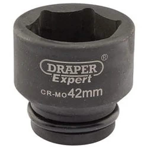 Expert Quality, 6 point sockets forged from chrome molybdenum hardened, tempered and chemically blacked for corrosion protection. Supplied with pin and ring. These sockets are for use with air, electric or manual impact wrenches. Packed in polythene bag with barcode.