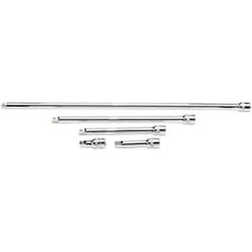 Expert Quality, manufactured from chrome vanadium steel hardened and tempered, with a polished finish. Each ext. bar has a knurled ring for extra grip. Attached with a spring - loaded ball bearing for secure socket holding. Display Packed.