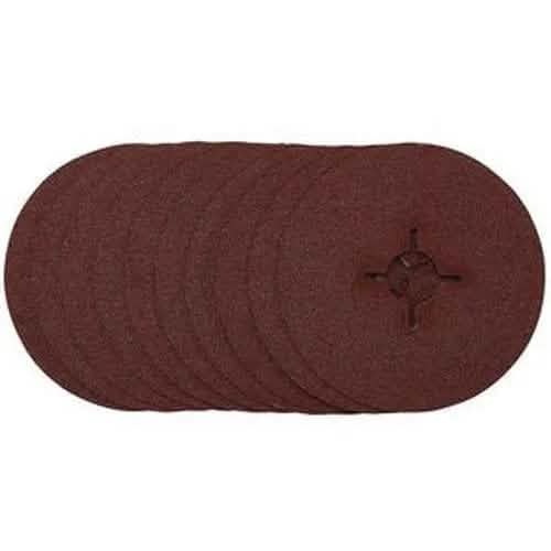 These professional quality aluminium oxide 115mm sanding discs are resin bonded to provide improved grain adhesion and performance. The heavy-duty vulcanised fibre backing resists tears, making the disc more durable and able to withstand the toughest jobs. The cross-shaped centre is suitable for fitting a variety of applications. Ideal for sanding, grinding, deburring and finishing of blending metals. Also suitable for removing rust, paint and weld dressing. Compatible with all 115mm flexible backing pads.