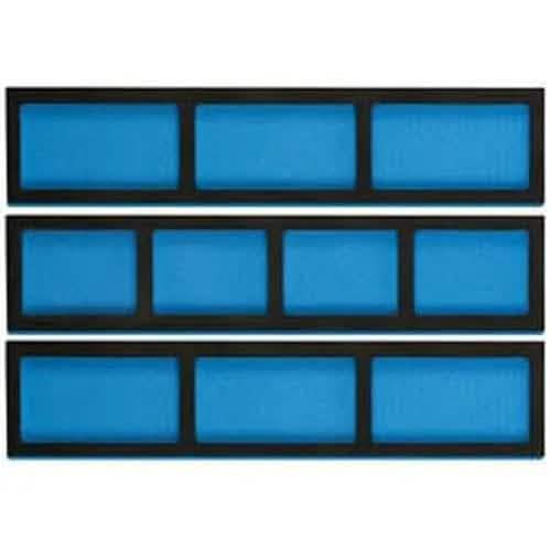 Contents:: 2 x trays with 3 equal sized pockets, 86 x 162 x 20mm 1x tray with 4 equal sized pockets, 86 x 108 x 20mm