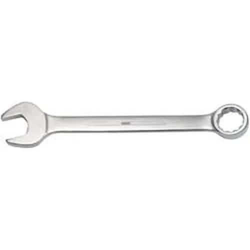 Heavy duty long pattern, fully drop forged chrome vanadium steel hardened, tempered and chrome plated. Polished ring end offset at 15�. Jaw offset at 15�. Sold loose in polybags with barcode label.